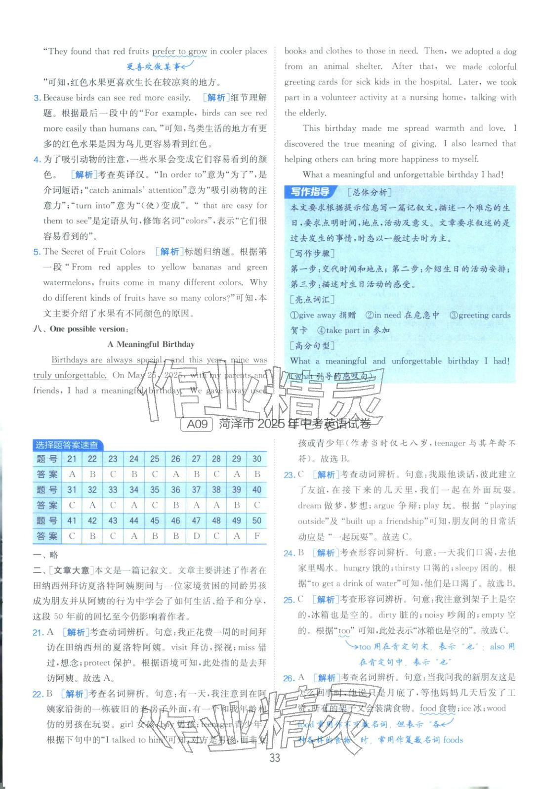 注:目前有些书本章节名称可能整理的还不是很完善,但都是按照顺序排列的,请同学们按照顺序仔细查找。练习册 2026年山东省中考试卷精选九年级英语 答案主要是用来给同学们做完题方便对答案用的,请勿直接抄袭。
