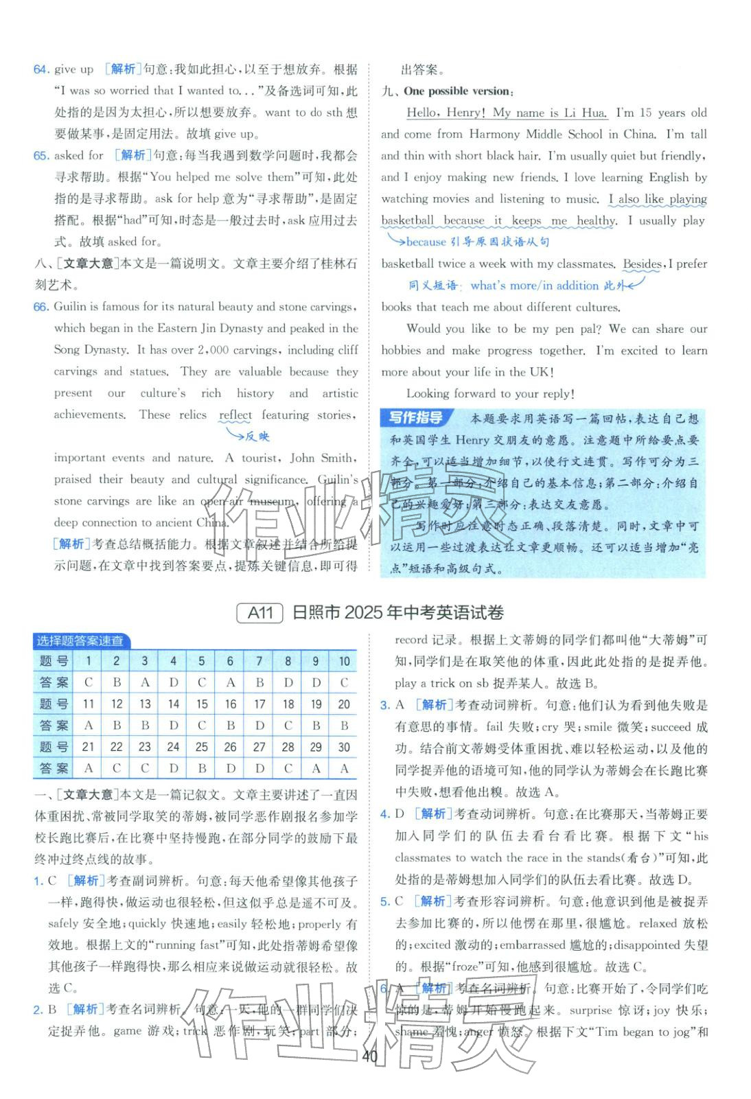 注:目前有些书本章节名称可能整理的还不是很完善,但都是按照顺序排列的,请同学们按照顺序仔细查找。练习册 2026年山东省中考试卷精选九年级英语 答案主要是用来给同学们做完题方便对答案用的,请勿直接抄袭。
