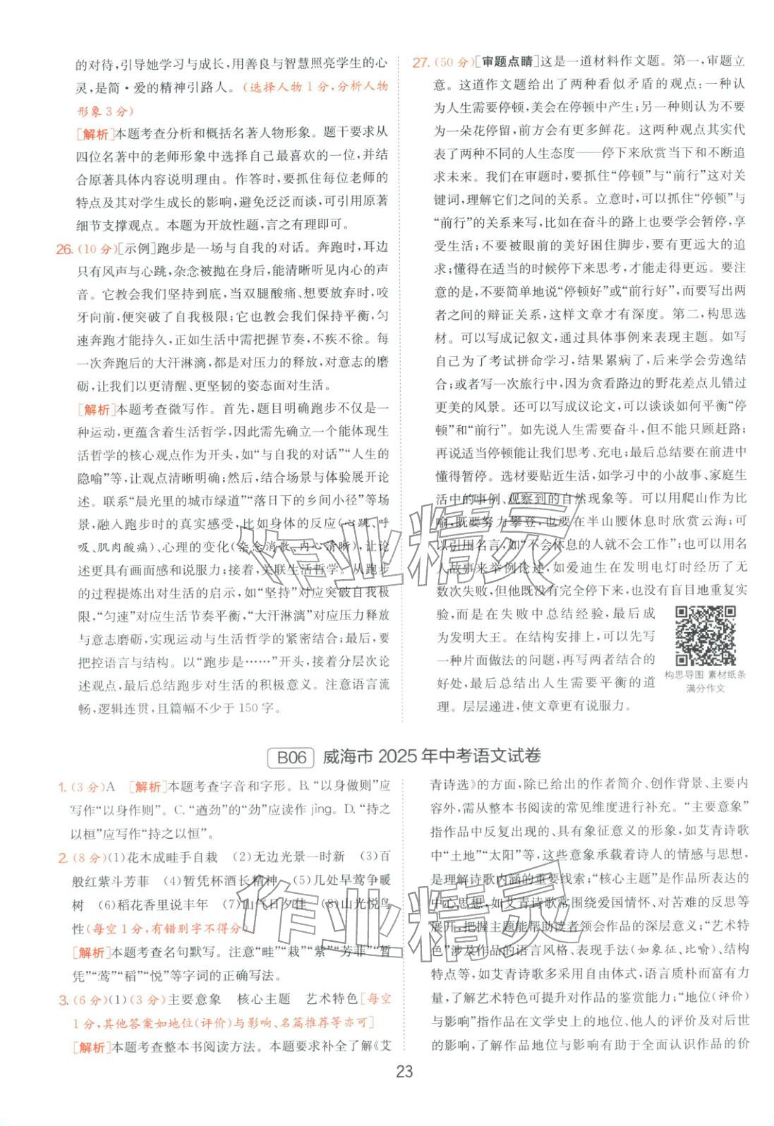 注:目前有些书本章节名称可能整理的还不是很完善,但都是按照顺序排列的,请同学们按照顺序仔细查找。练习册 2026年山东省中考试卷精选九年级语文 答案主要是用来给同学们做完题方便对答案用的,请勿直接抄袭。