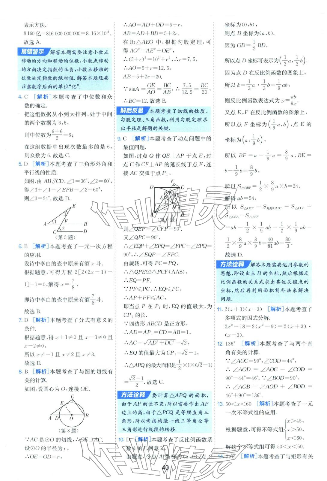 注:目前有些书本章节名称可能整理的还不是很完善,但都是按照顺序排列的,请同学们按照顺序仔细查找。练习册 2026年山东省中考试卷精选九年级数学 答案主要是用来给同学们做完题方便对答案用的,请勿直接抄袭。