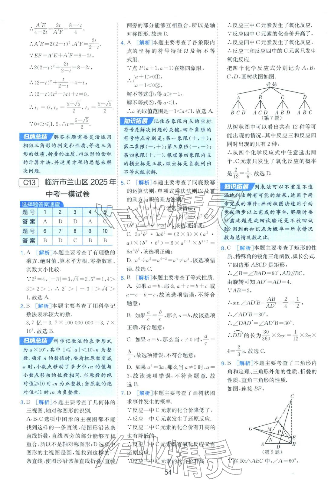 注:目前有些书本章节名称可能整理的还不是很完善,但都是按照顺序排列的,请同学们按照顺序仔细查找。练习册 2026年山东省中考试卷精选九年级数学 答案主要是用来给同学们做完题方便对答案用的,请勿直接抄袭。