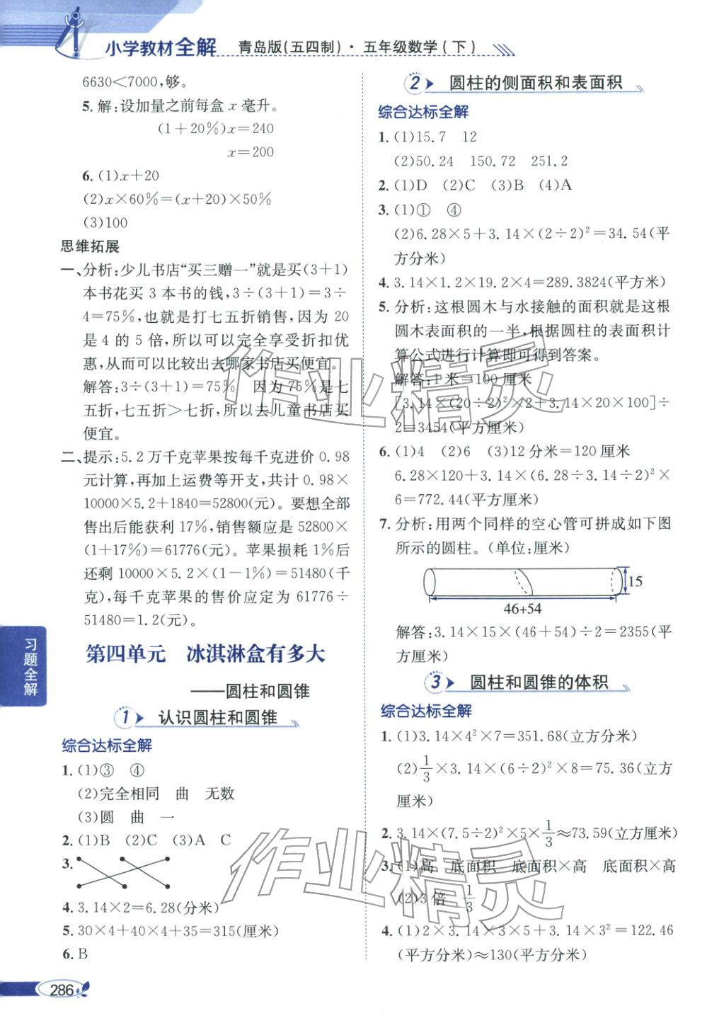 注:目前有些书本章节名称可能整理的还不是很完善,但都是按照顺序排列的,请同学们按照顺序仔细查找。练习册2026年教材全解五年级数学下册青岛版答案主要是用来给同学们做完题方便对答案用的,请勿直接抄袭。