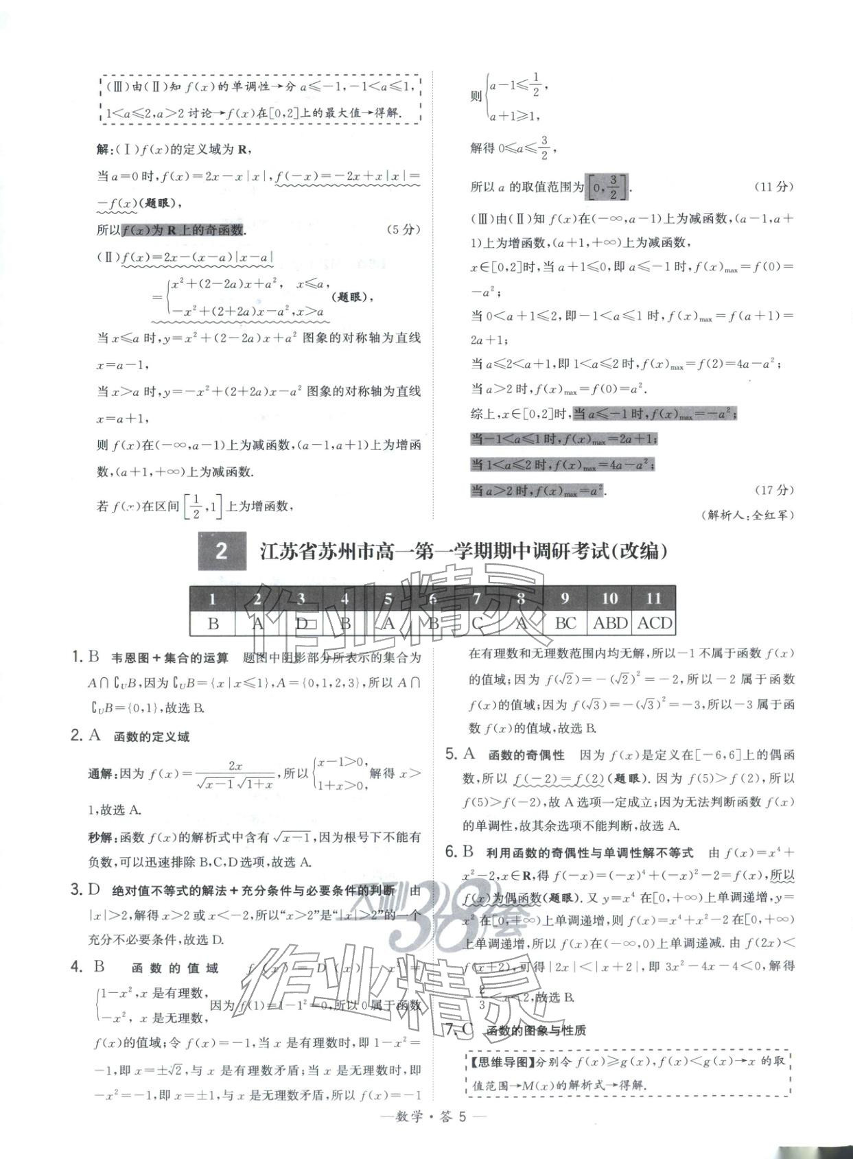 精英家教网> 2025年天利38套高中名校期中期末联考测试卷高中数学必修第一册苏教版 > 第5页 参考答案