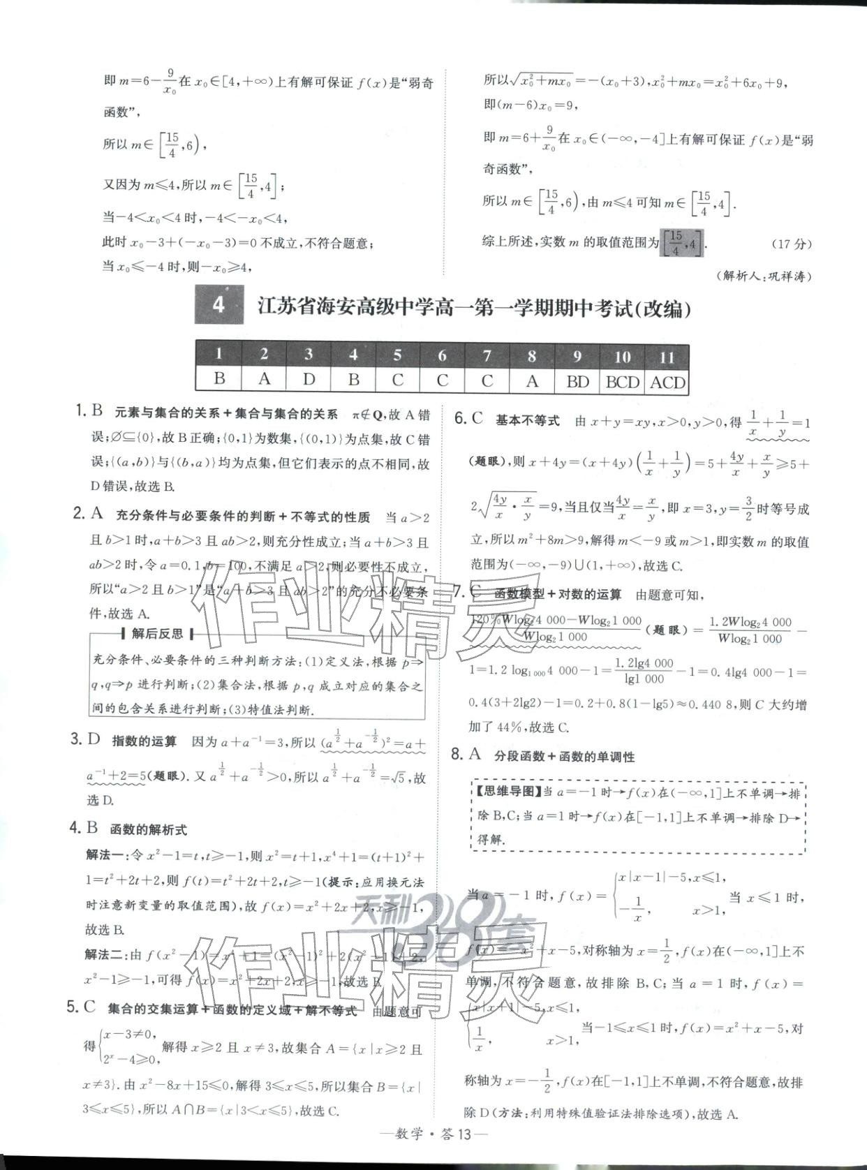精英家教网> 2025年天利38套高中名校期中期末联考测试卷高中数学必修第一册苏教版 > 第13页 参考答案