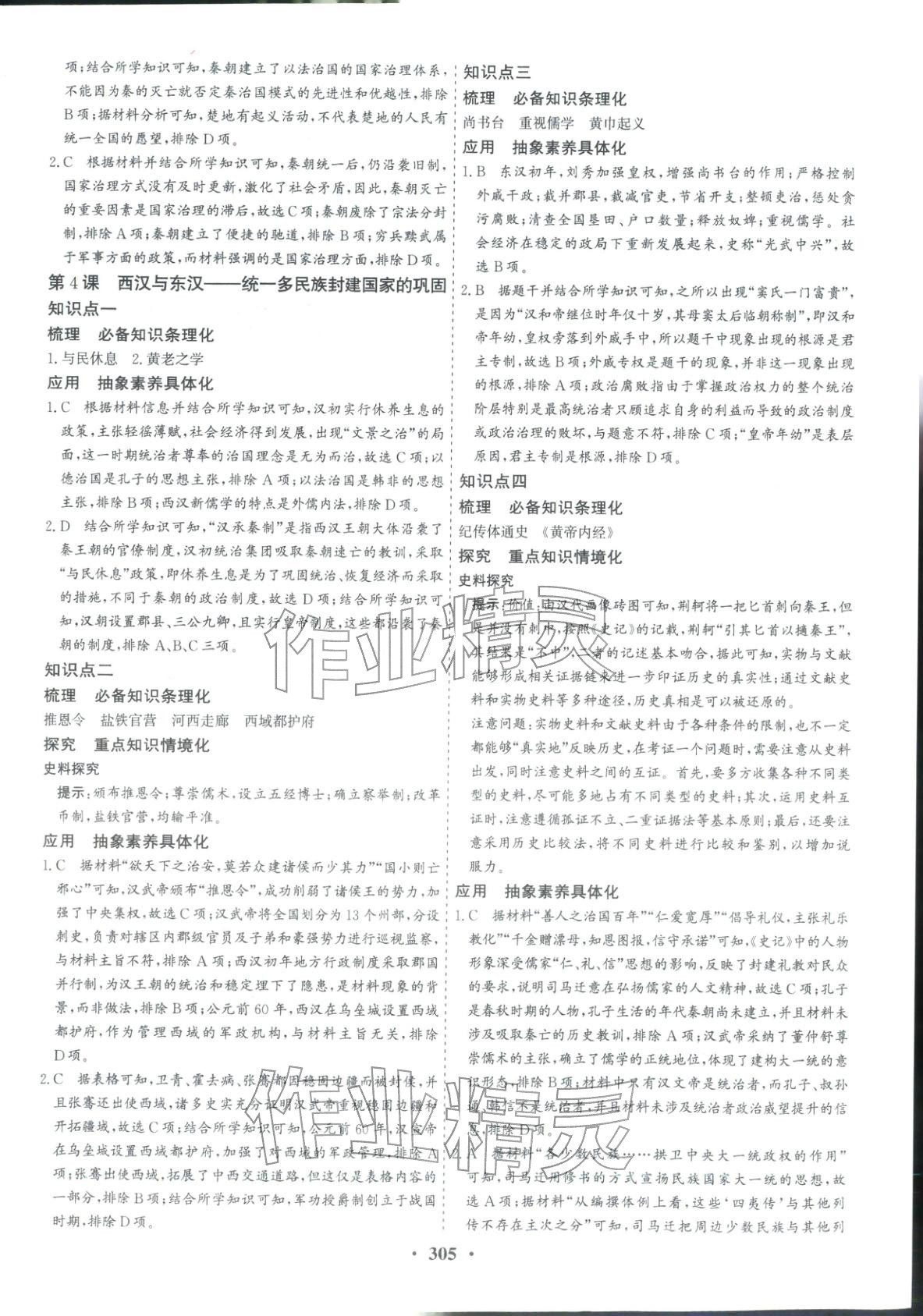 2025年优化探究同步导学案高中历史必修上册人教版 参考答案第3页