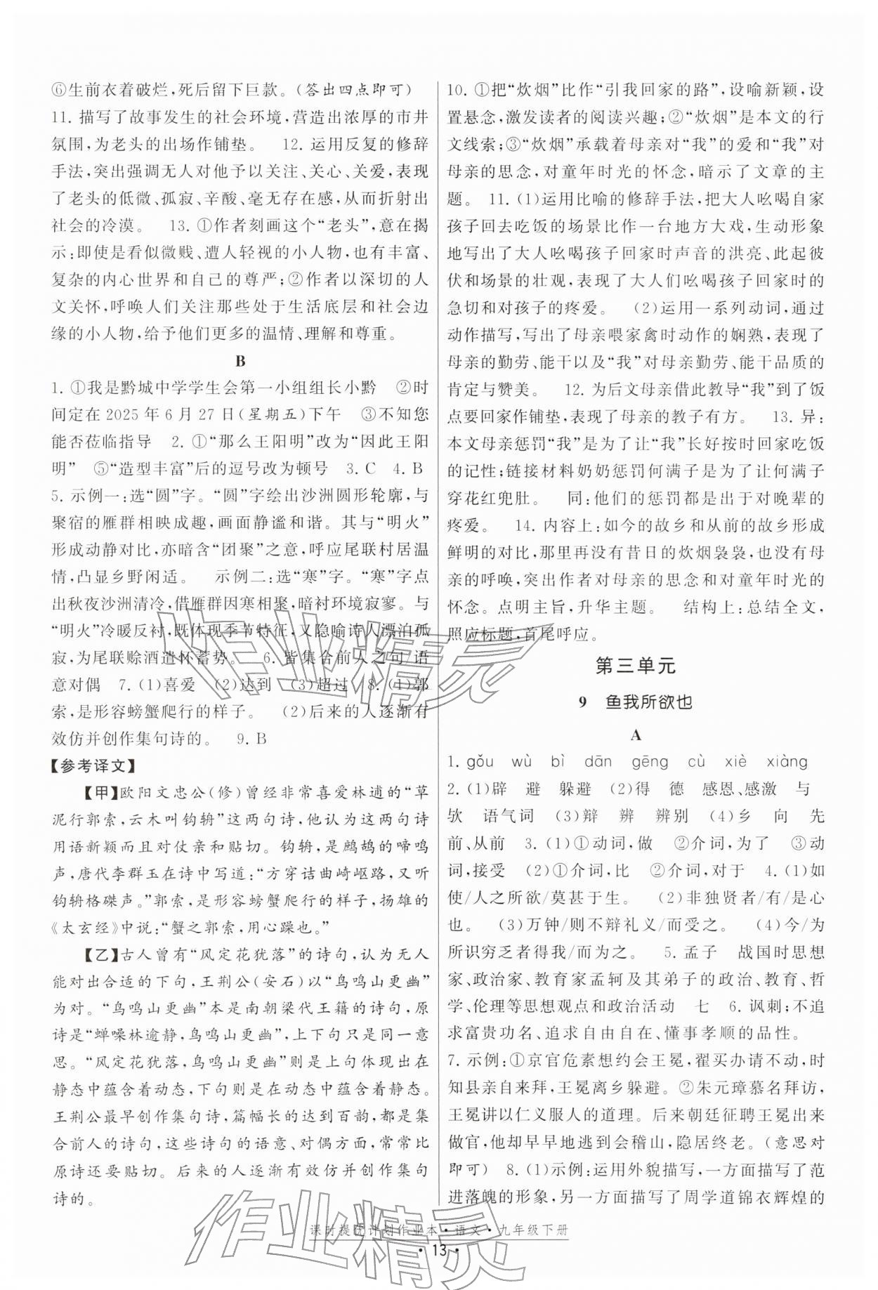 注:目前有些书本章节名称可能整理的还不是很完善,但都是按照顺序排列的,请同学们按照顺序仔细查找。练习册 2026年课时提优计划作业本九年级语文下册人教版 答案主要是用来给同学们做完题方便对答案用的,请勿直接抄袭。