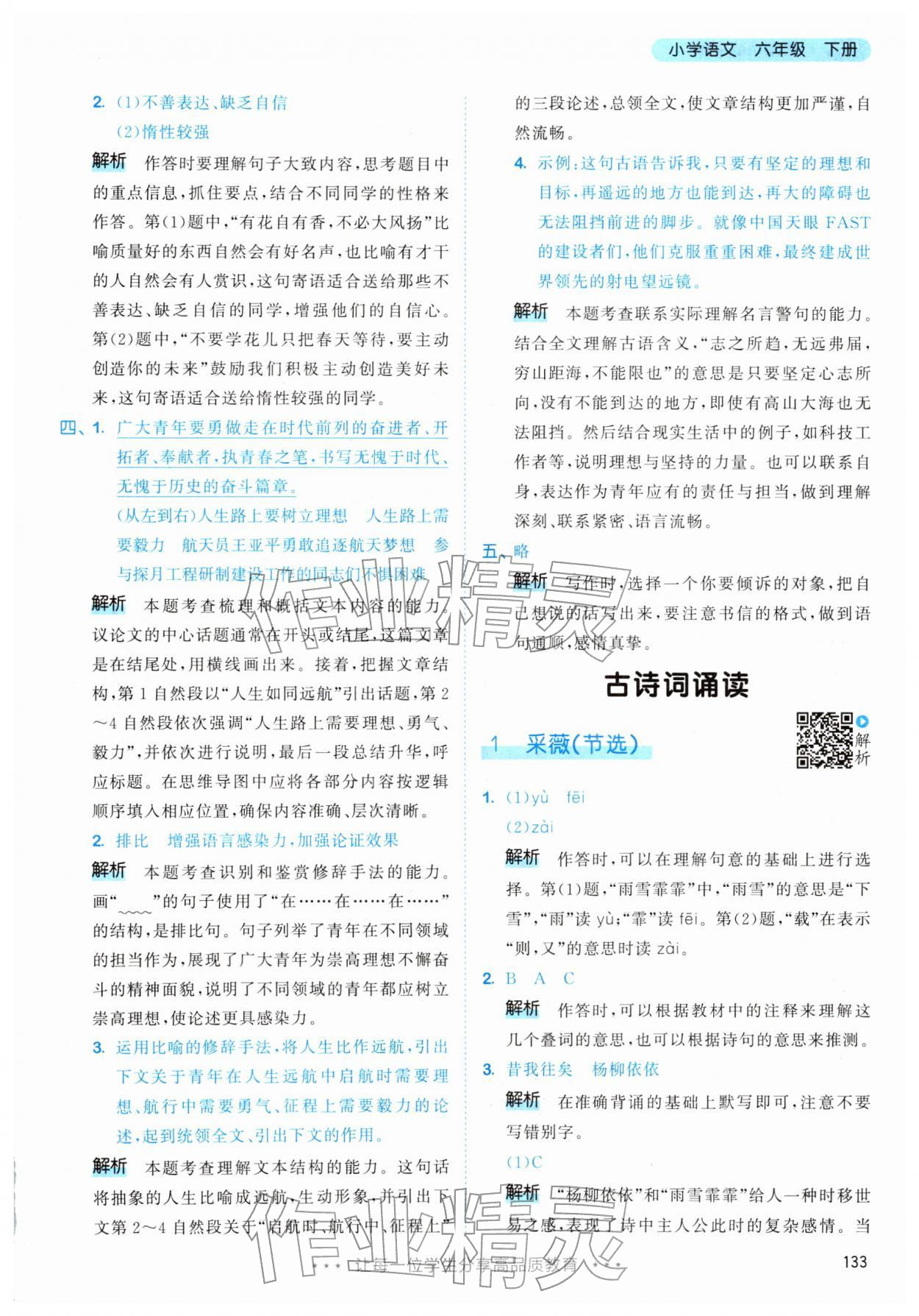 注:目前有些书本章节名称可能整理的还不是很完善,但都是按照顺序排列的,请同学们按照顺序仔细查找。练习册 2026年53天天练六年级语文下册人教版 答案主要是用来给同学们做完题方便对答案用的,请勿直接抄袭。