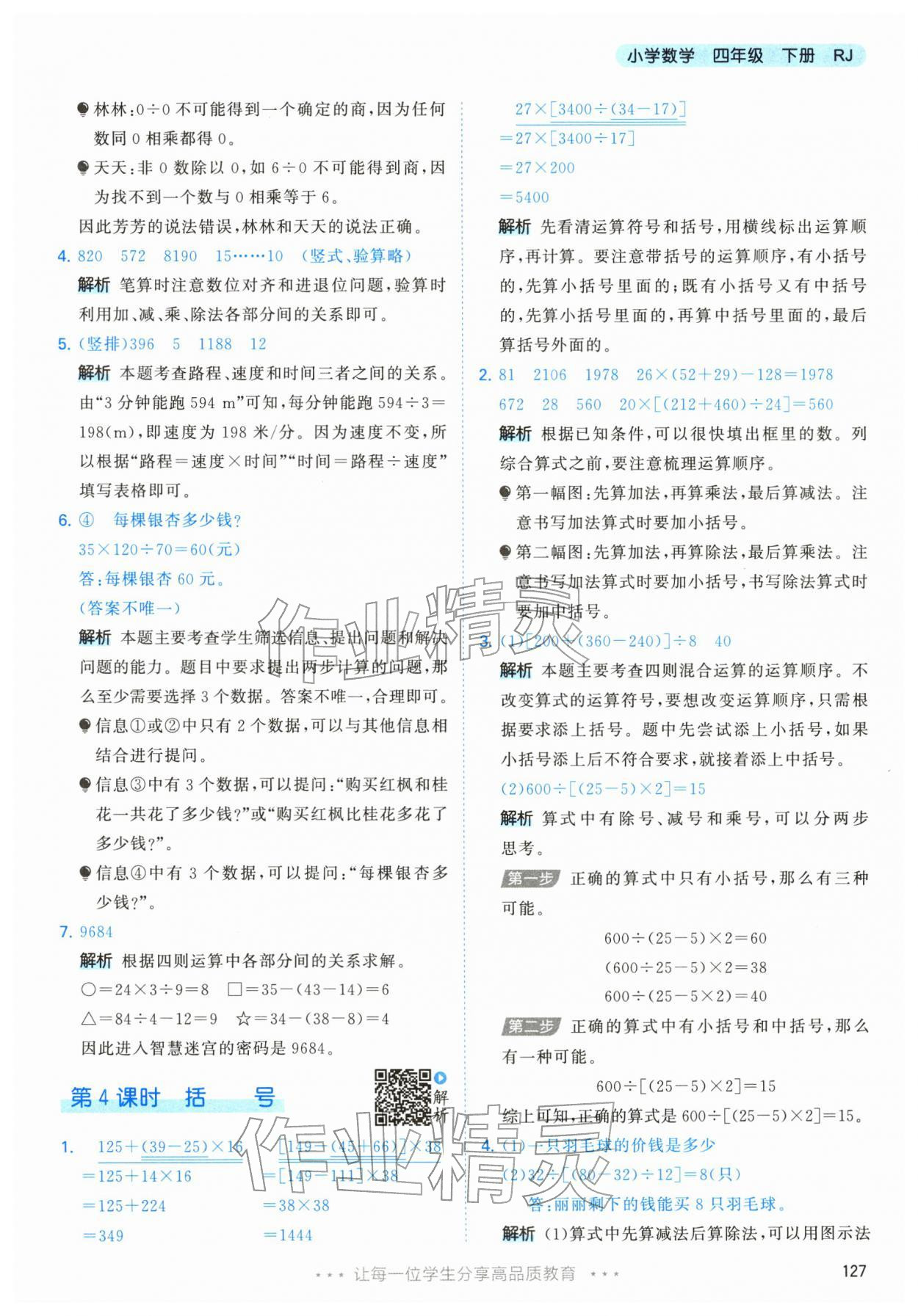 注:目前有些书本章节名称可能整理的还不是很完善,但都是按照顺序排列的,请同学们按照顺序仔细查找。练习册2026年53天天练四年级数学下册人教版答案主要是用来给同学们做完题方便对答案用的,请勿直接抄袭。