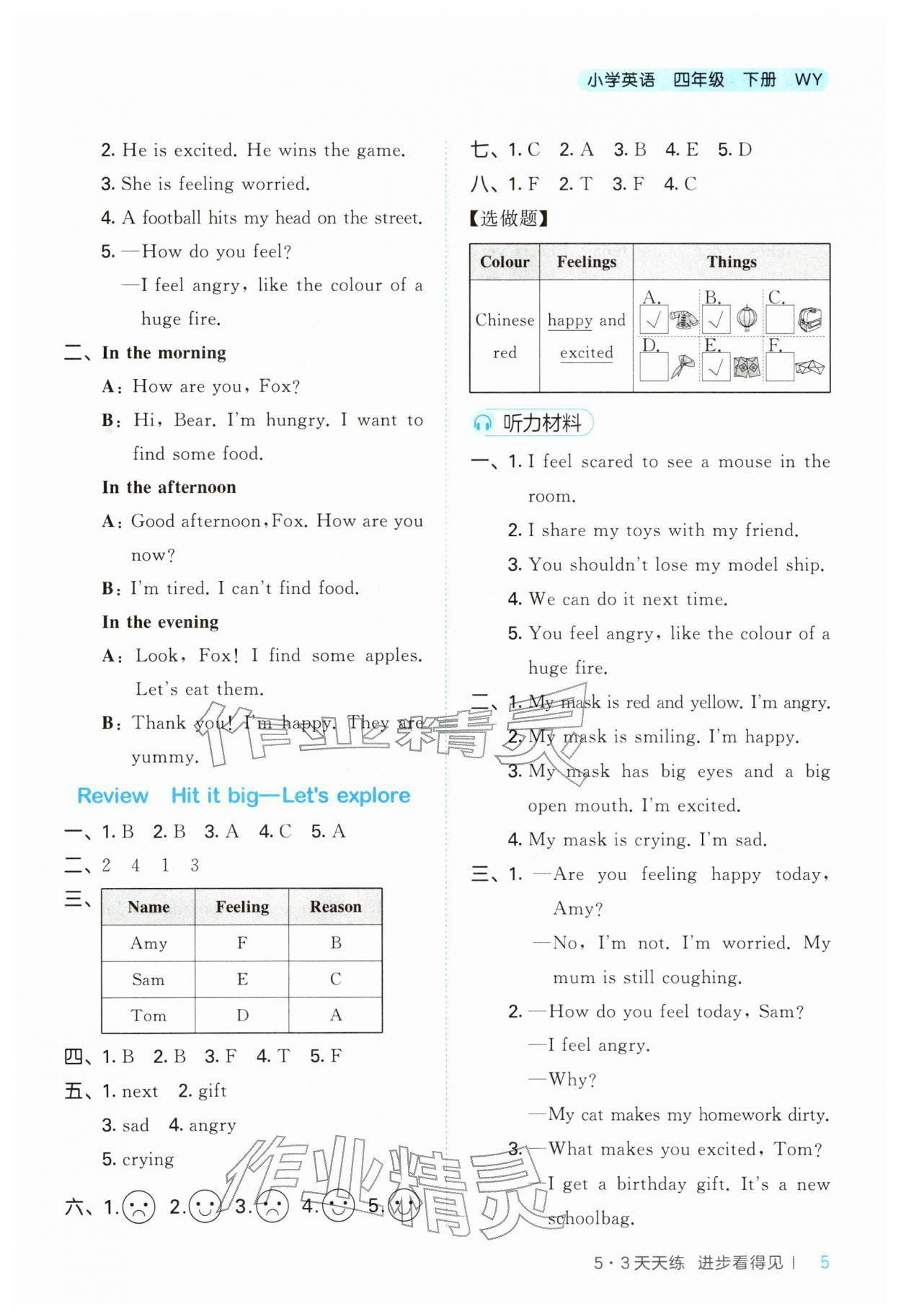 注:目前有些书本章节名称可能整理的还不是很完善,但都是按照顺序排列的,请同学们按照顺序仔细查找。练习册 2026年53天天练四年级英语下册外研版 答案主要是用来给同学们做完题方便对答案用的,请勿直接抄袭。