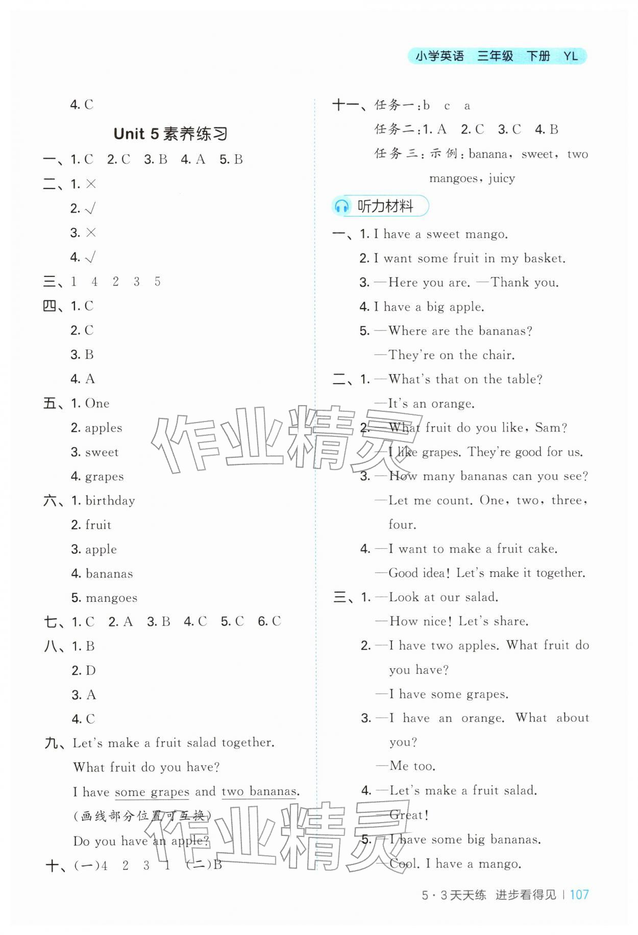 注:目前有些书本章节名称可能整理的还不是很完善,但都是按照顺序排列的,请同学们按照顺序仔细查找。练习册 2026年53天天练三年级英语下册译林版 答案主要是用来给同学们做完题方便对答案用的,请勿直接抄袭。