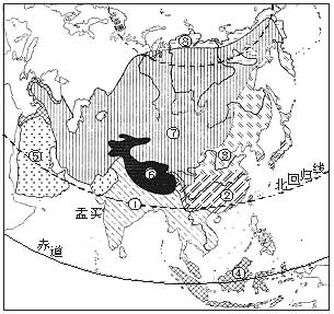21.(16分)读“亚洲气候类型分布图”,回答下列问题。