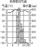 答案:热带季风 全年高温,有明显的旱、雨季 6~9月 该时期受印度洋吹来的湿润的西南季风的影响