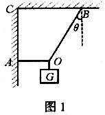 1.如图1所示,用轻绳AO和OB将重为G的重物悬挂在水平天花板和竖直墙壁之间处于静止状态,AO绳水平,OB绳与竖直方向的夹角为θ。则AO绳的拉力T1、OB绳的拉力T2的大小与G之间的关系为
