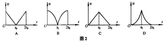 3.将一个皮球从距地面高度为h处由静上释放,经过时间t0落地,碰到地面弹起后又上升到最高点。球与地面作用的时间极短,不计空气阻力以及球与地面作用过程中机械能的损失。图2为定性反映皮球运动过程中速度v的大小随时间t变化的图象,其中正确的是