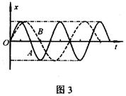 4.如图3所示为在同一地点的A、B两个单摆做简谐运动的图像,其中实线表示A的运动图象,虚线表示B的运动图象。关于这两个单摆的以下判断中正确的是