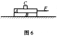 9.如图6所示,在水平桌面上叠放着质量相等的A、B两块木板,在木板A上放着一个物块C,木板和物块均处于静止状态。已知物块C的质量为m,A、B、C之间以及B与地面之间的动摩擦因数均为μ。用水平恒力F向右拉动木板A使之做匀加速运动,物块C始终与木板A保持相对静止。设最大静摩擦力与滑动摩擦力大小相等,重力加速度为g。则以下判断正确的是