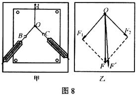 12.在“验证力的平行四边形定则”的实验中某同学的实验情况如图8甲所示,其中A为固定橡皮筋的图钉,O为橡皮筋与细绳的结点,OB和OC为细绳。图乙是在白纸上根据实验结果画出的图。