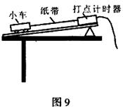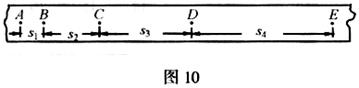 13.用如图9所示的实验装置测量物体沿斜面匀加速下滑的加速度,打点计时器打出的纸带如图10所示。已知纸带上各相邻点的时间间隔为T,则可以得出打点计时器在打出C点时小车的速度大小的表达式为___________________________,小车运动的加速度大小的表达式为_______________________。