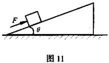 14.(7分)如图11所示,用一个平行于斜面向上的恒力将质量m=10.0kg的箱子从斜坡底端由静止推上斜坡,斜坡与水平面的夹角θ=37°,推力的大小F=100N,斜坡长度s=4.8m,木箱底面与斜坡的动摩擦因数μ=0.20。重力加速度g取10m/s2,且已知sin37°=0.60,cos=
