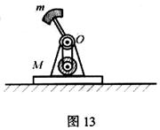 18.(8分)如图13是电动打夯机的结构示意图,电动机带动质量为m的重锤(重锤可视为质点)绕转轴O匀速转动,重锤转动半径为R。电动机连同打夯机底座的质量为M,重锤和转轴O之间连接杆的质量可以忽略不计,重力加速度为g。