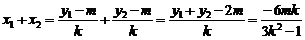 消去x,整理得:(3k2-1)y2+2my-m2-3k2=0.……………………………8分
