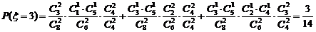 某社区举办北京奥运知识宣传活动,现场的“抽卡有奖游戏”特别引人注目.游戏规则是:盒子中装有8张形状大小相同的精美卡片,卡片上分别印有“奥运福娃”或“奥运会徽”.要求4人一组参加游戏,参加游戏的4人从盒子中轮流抽取卡片,一次抽2张,抽取后不放回,直到4人中的一人一次抽到2张“奥运福娃”卡才能得奖并终止游戏.