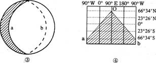 C.①ao为晨线 ②bo为昏线 D.③a为晨线 ④bo为昏线
