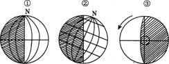 (5)假如图示位置时,北京时间是11点,那么直射点的经度是 ,新的一天占全球区域的 (填“多一半” “少一半” 或“相等”)。