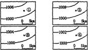 44.下列四幅“等压线分布图”中,①②③④四地风速由大到小的正确排序是( )