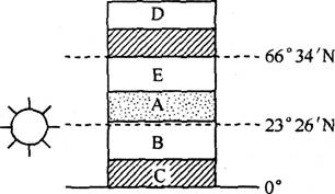 (2)此时是 月 日前后,D带的昼夜状况是 。