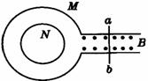 5、如图所示,在匀强磁场B中放一电阻不计的平行金属导轨,导轨跟大线圈M相接,导轨上放一金属棒ab并与导轨紧密接触,磁感线垂直与导轨所在平面,在导体棒向右做切割磁感线运动的过程中,则M所包围的闭合线圈N内产生的电磁感应现象是( )