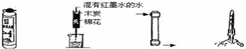 18、(1)①(2)⑤(3)③(4)⑥   19、(1)导电、导热、延展性(2)②④(3)H2+CuO Cu+H2O(合理均可)(4)保持铁器表面干燥、洁净(合理均可)(5)①③④⑤   20、(1)A(2)b;加水(3)否;t℃时,a、b两物质的溶解度不相等   21、(1)O2;食物(2)工程塑料(3)2LiOH+CO2=Li2CO3+H2O    22、(1)1:3(2)a:3:(3a+1)(3)化合反应(4)化学反应前后元素不变(合理均可)  23、(1)Zn>Cu>Ag  Fe>Cu>Ag(2)Zn与Fe与酸反应(合理均可);三个实验不能得出Zn与Fe的活动性强弱;(3)② 24、①CuSO4;有硫酸铜则溶液呈蓝色 ②MgCl2、NaCl (合理均可) ③降低水的凝固点 三、综合题(30小题6分,每个化学方程式2分,其余每空1分,共30分) 25、(1)微溶于水的无色气体(2)NH3 (3)2NO+2CO 2CO2+N2 26、(1)酒精灯;2KMnO4 K2MnO4+MnO2+O2↑;先将导管从水漕中取出(2)A;①(3)反应条件与反应物状态27、(1)①粗盐提纯②检查装置的气密性(2)将干燥小花直接放入氨气中;证明氨气不会使红色石蕊试纸变蓝色 28、(1)取水样分别放入两支试管中,各滴入少量肥皂水振荡;泡沫多的是纯水,泡沫少的是硬水;(2)①将气体通入澄清石灰水,澄清石灰水变浑浊  ②CaCO3+2HCl=CaCl2+H2O+CO2↑  (3)①加热煮沸; 热水瓶中结水垢降低保温性能;②加入食醋浸泡 29、(1)塑料瓶变扁;将二氧化硫水溶液滴到pH试纸上,与标准比色卡比较颜色 (2)否;因为二氧化硫溶解或与水反应均可有此现象 30、(1)解:设需这种浓硫酸的质量为x 100g×19.6%=1.84g/cm3×98%x     X=10.9g (2)设可制得氢气的质量为y Zn+H2SO4=ZnSO4+H2↑ 65