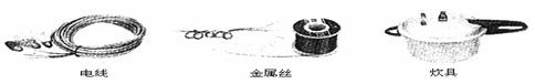 _ (4)表示阳离子的结构示意图是___________       试题详情 19.(6分)人们的日常生活离不开金属,高科技新材料的开发和应用也需要金属。 (1)根据下图金属应用实例推断,金属具有的物理性质有_____________。试题详情