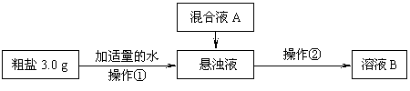 (1)操作①中需要使用的玻璃仪器有 、 。操作②的名称为 ,若在操作②结束后发现溶液B略有浑浊,应采取的措施是 。(2)混合液A的主要成分是 。(填化学式)