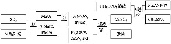 (4)反应④发生的化学反应为:MnSO4 + 2NH4HCO3 = MnCO3↓+ (NH4)2SO4 + CO2↑ + H2O。
