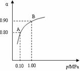(3)550 ℃时,SO2转化为SO3的平衡转化率(α)与体系总压强(p)的关系如右图所示。则:将2.0 mol SO2和1.0 mol O2置于5 L密闭容器中,反应达平衡后,体系总压强为0.10 M Pa。该反应的平衡常数等于 。A与B表示不同压强下的SO2转化率,通常情况下工业生产中采用常压的原因是