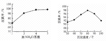 (填数字序号),反应①的离子方程式为 。该工艺中反应③的沉淀率(又称沉矾率)是回收钒的关键之一,沉钒率的高低除受溶液pH影响外,还需要控制氯化铵系数(NH4Cl加入质量与料液中V2O5的质量比)和温度。根据下图试建议控制氯化铵系数和温度: 、 。