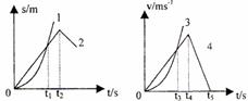 3.如图所示的位移(s)―时间(t)图象和速度(v)―时间(t)图象中,给出四条曲线1、2、3、4代表四个不同物体的运动情况,关于它们的物理意义,下列描述正确的是( )