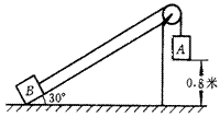 19、质量均为m的物体A和B分别系在一根不可伸长的轻绳两端,绳子跨过固定在倾角为θ=30°的斜面顶端的定滑轮上,斜面固定在水平地面上,开始时把物体B拉到斜面底端,这时物体A离地面的高度为h=