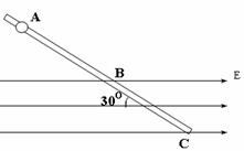 19.足够长的绝缘细杆位于竖直平面内,与水平方向成30°角倾斜放置,质量为m、带电-q的小环套在绝缘杆上,可沿杆无摩擦滑动,当环从A点无初速地释放后,运动距离为L时到达B点,恰好进入水平向右的匀强电场中,再运动距离L后到达C点且开始向上返回滑行,求