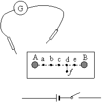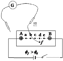(4)若电流表的两表笔分别接触图中d和f两点(f与d的连线和A和B的连线垂直)时表针反偏(电流从红表笔流进时,表针正偏),则电流表的红表笔接在 点,要使表针仍指在零刻度,应将接f的指针(即表笔)向 (填“左”或“右”)移动。