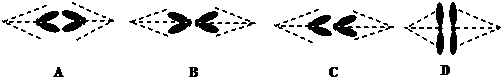 10.在显微镜下观察洋葱根尖细胞有丝分裂装片,着丝点分裂,染色体移向两极时形态是![]()