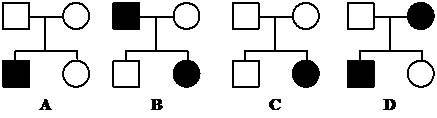 27.在下列4个图中,只能是由常染色体上隐性基因决定的遗传病(图中深颜色表示患者)是