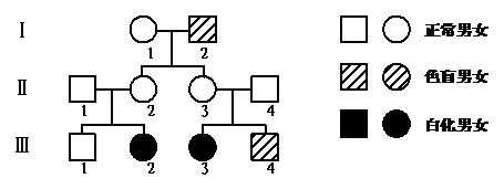 下图为白化病和色盲病两种遗传病的家庭系谱图,设白化病的致病基因为a,色盲的致病基因为b,请回答下列问题:
