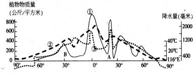 3.A 根据材料和图提供的信息,结合所学的自然地理和区域地理知识,可判断①表示每平方千米植物物质量线、②表示降水量线、③表示年均气温线。
