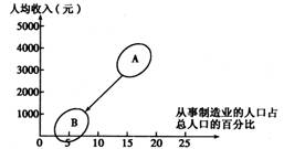 下图所示为我国不同地区人均收入与从事制造业口占总人口的百分比图。读图回答6~7题。