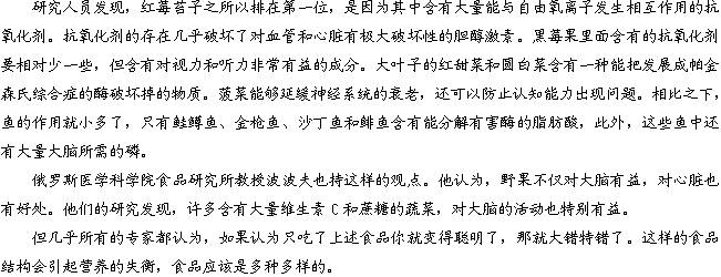 7.文中提到多种食品均对大脑有益,下列表述不能准确说明其原因的一项是( )