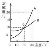 15.(4分)右图为A、B两种固体物质的溶解度曲线。请回答下列问题: