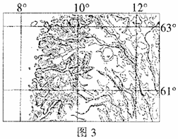 《大众科技报》报道:挪威能源集团开发出了一种新的绿色能源――海洋渗透能。海洋渗透能是利用咸水与淡水之间的渗透压力推动涡轮发电机而获得的能源。结合挪威等高线地形图(图3),回答5―6题。