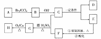 其中A、D常温下为气态,C的相对分子质量为90,C和乙二醇互为同系物,H能发生银镜反应。已知: